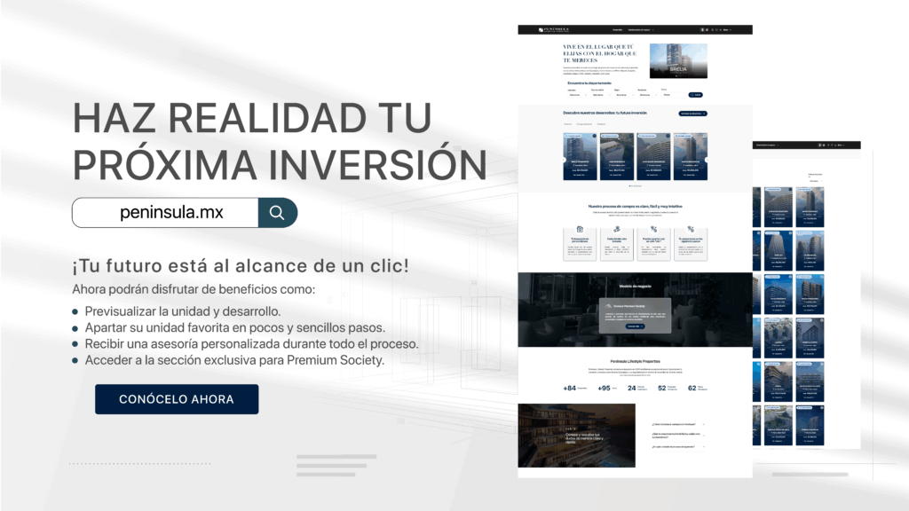 Península Lifestyle Properties nació para redefinir la vivienda vertical de lujo en México, desde nuestros inicios hemos demostrado compromiso con la innovación y la excelencia, ofreciendo a nuestros clientes un estilo de vida extraordinario y exclusivo en los destinos más privilegiados del país.
